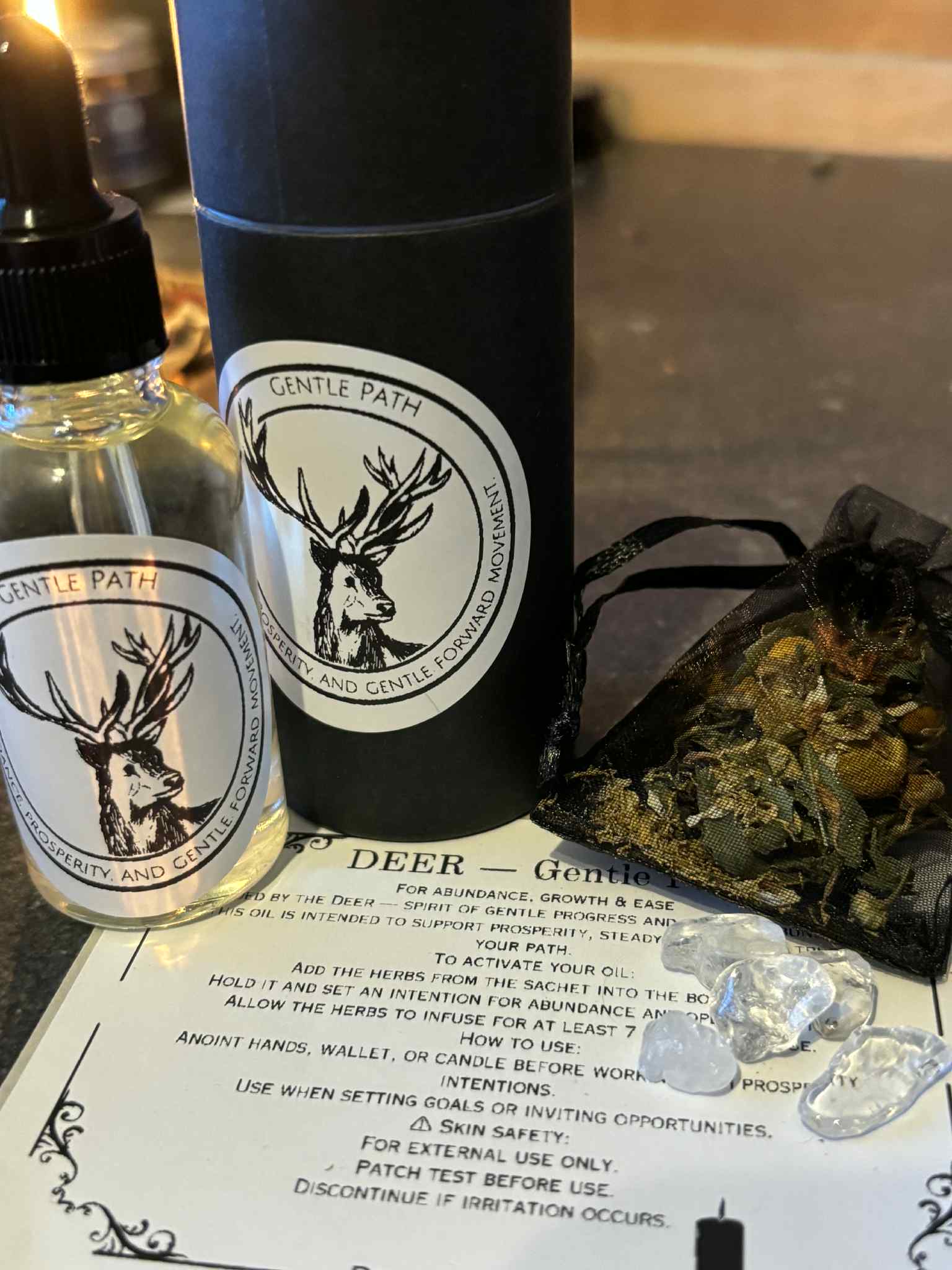 Use Gentle Path oil to enhance manifestation rituals, invite new opportunities, or cultivate a mindset of gratitude. The uplifting aroma of sweet orange blends with grounding patchouli, warm cedarwood, and subtle ginger to nurture abundance and vitality.