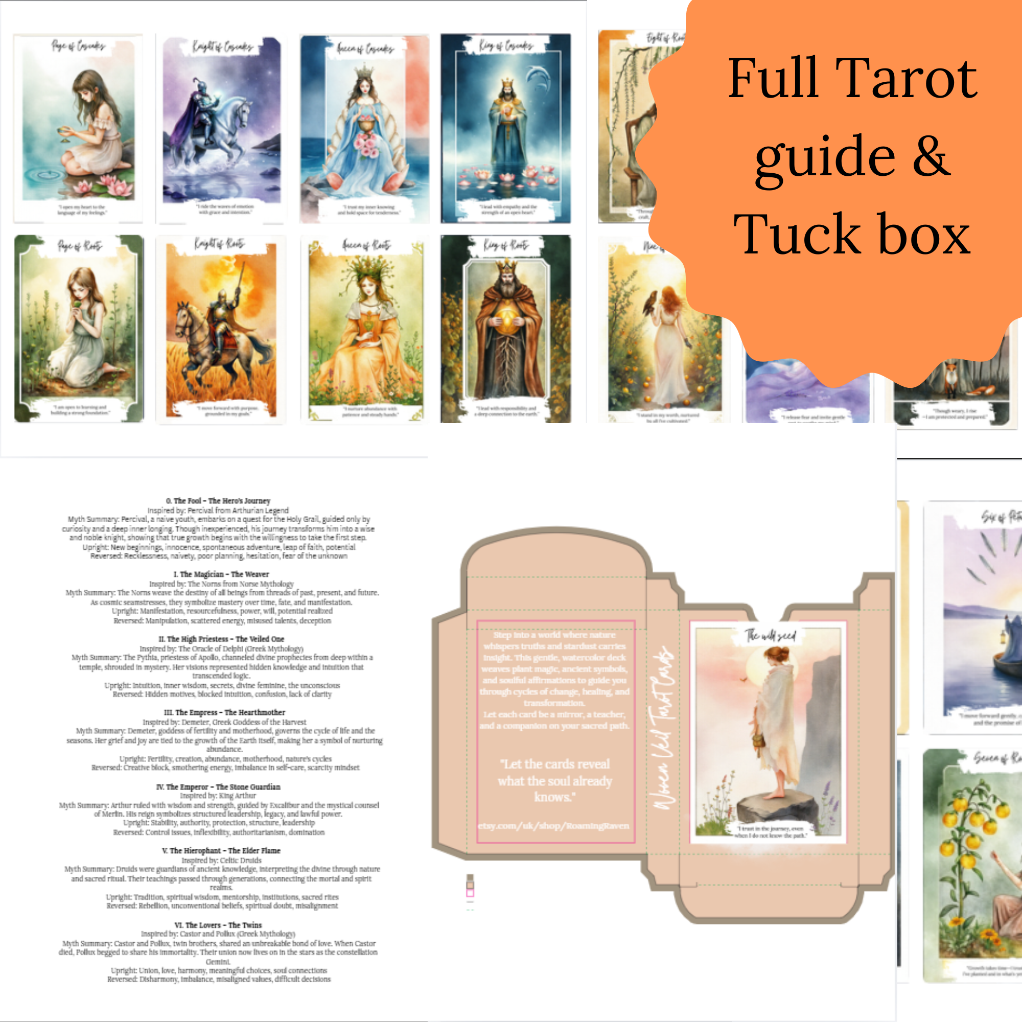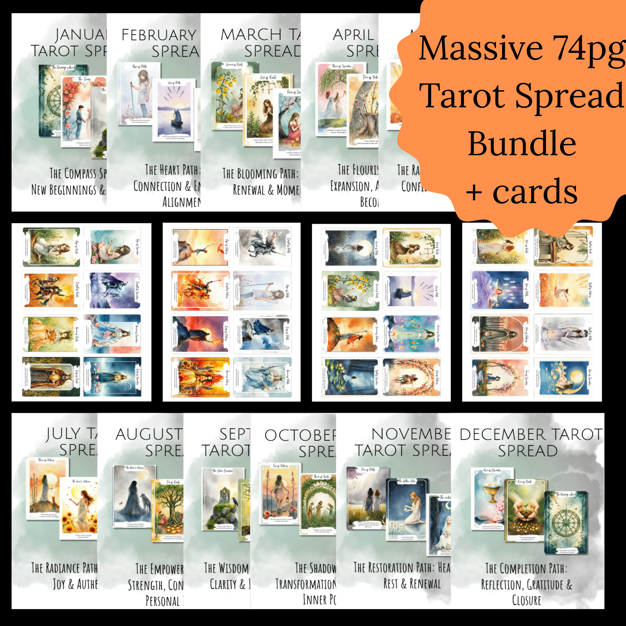 🌿 12-Month Tarot Bundle – Printable Tarot Deck, Monthly Spreads, Guidebook & Tuck Box