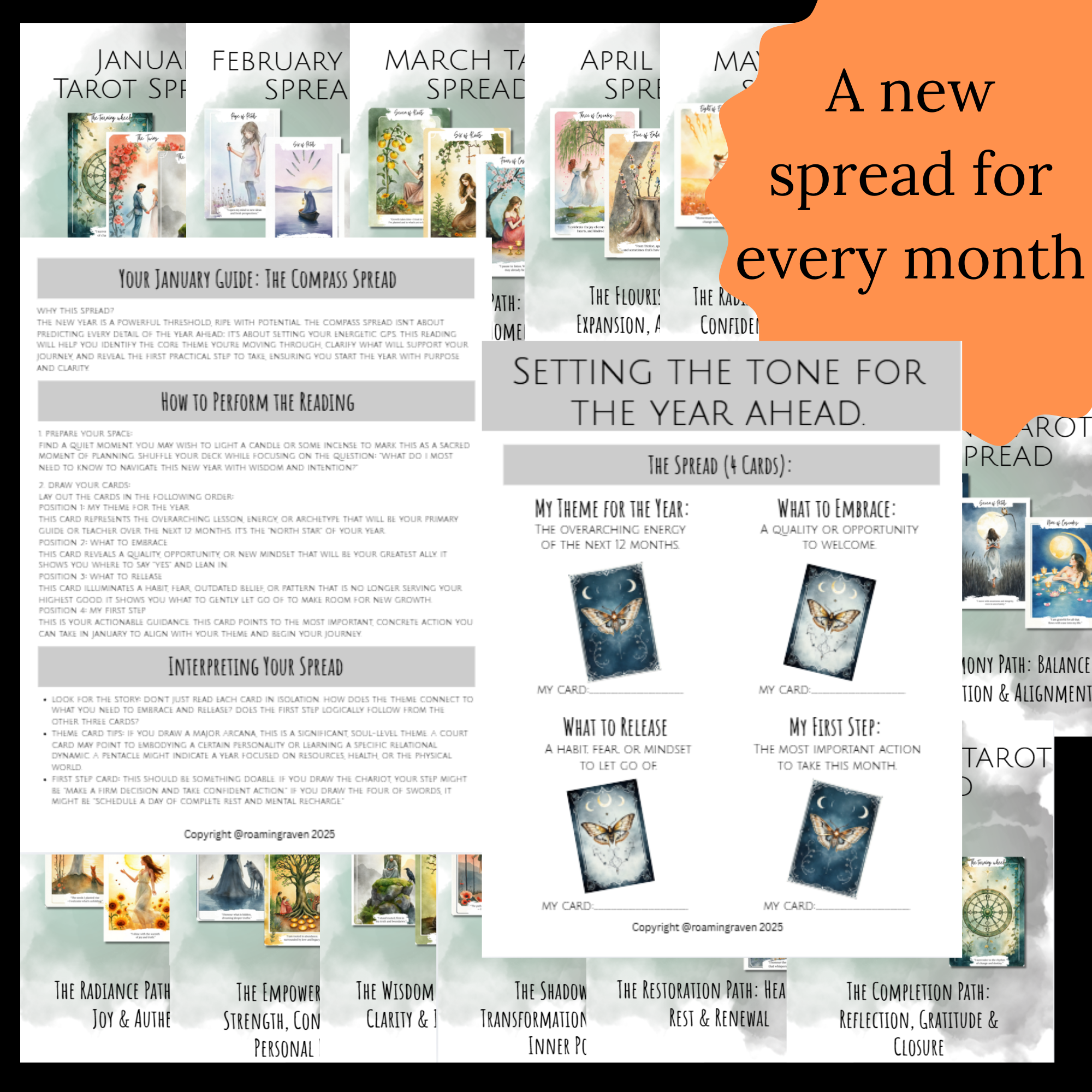 🌙 12 Monthly Tarot Spreads