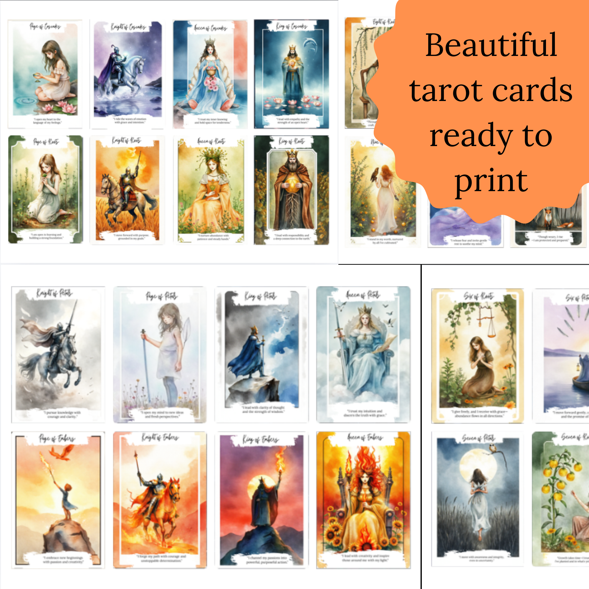 A beautifully designed tarot deck you can print and use at home—perfect for intuitive readings, journaling, and daily guidance.