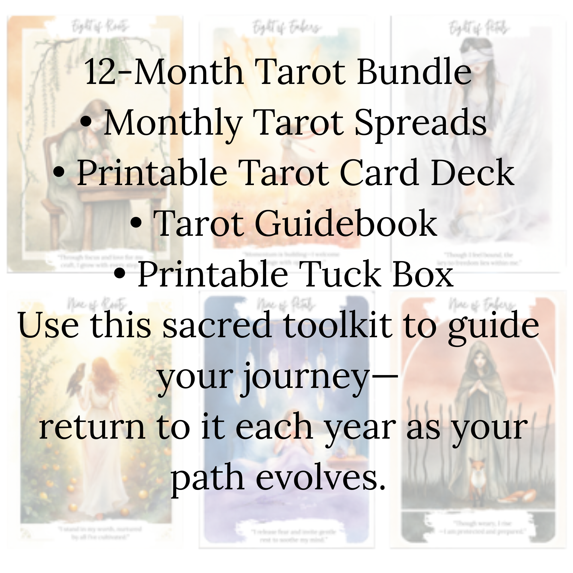 Whether you’re just beginning your tarot journey or looking to deepen your practice, this all-in-one printable set gives you everything you need to create meaningful, personal rituals—again and again, year after year.