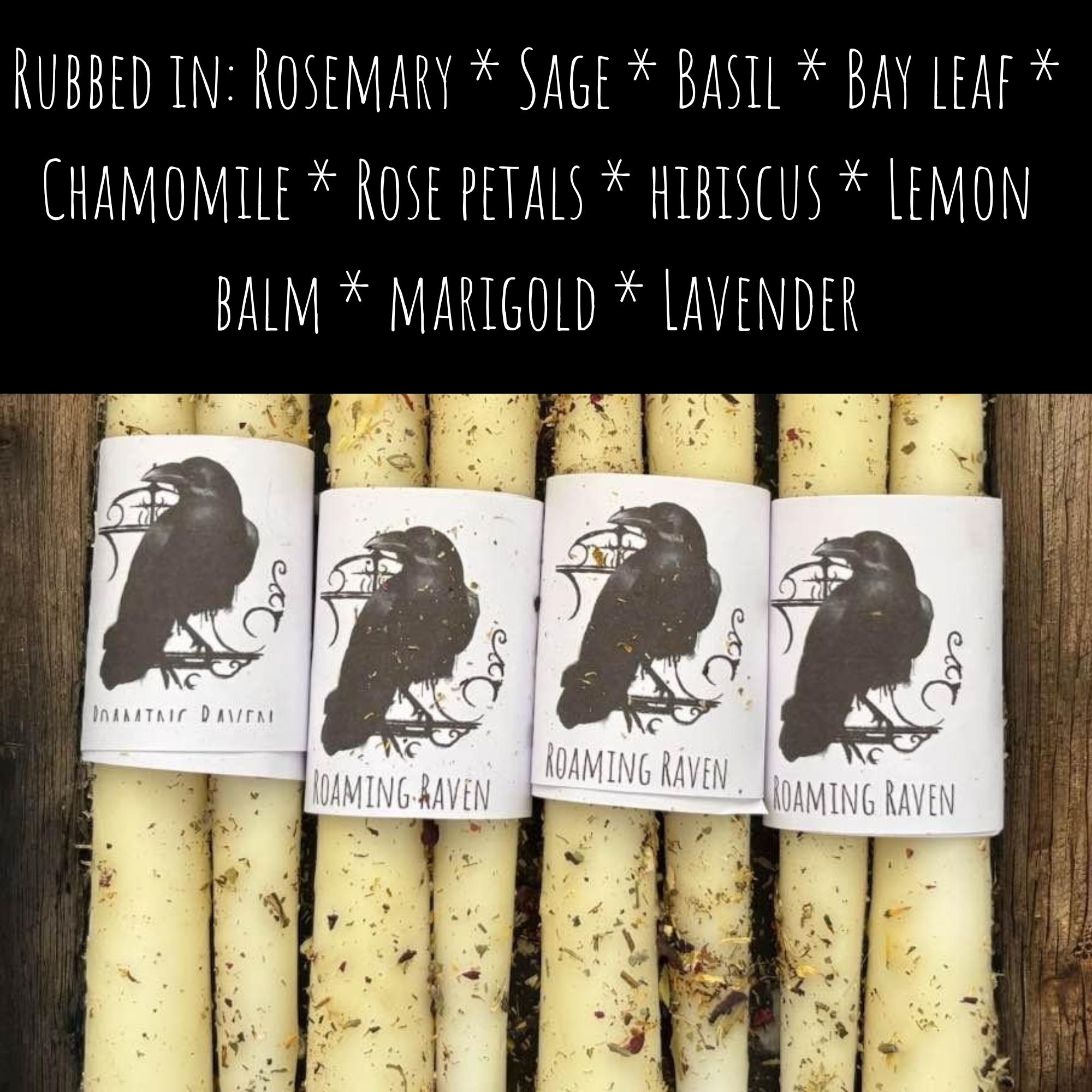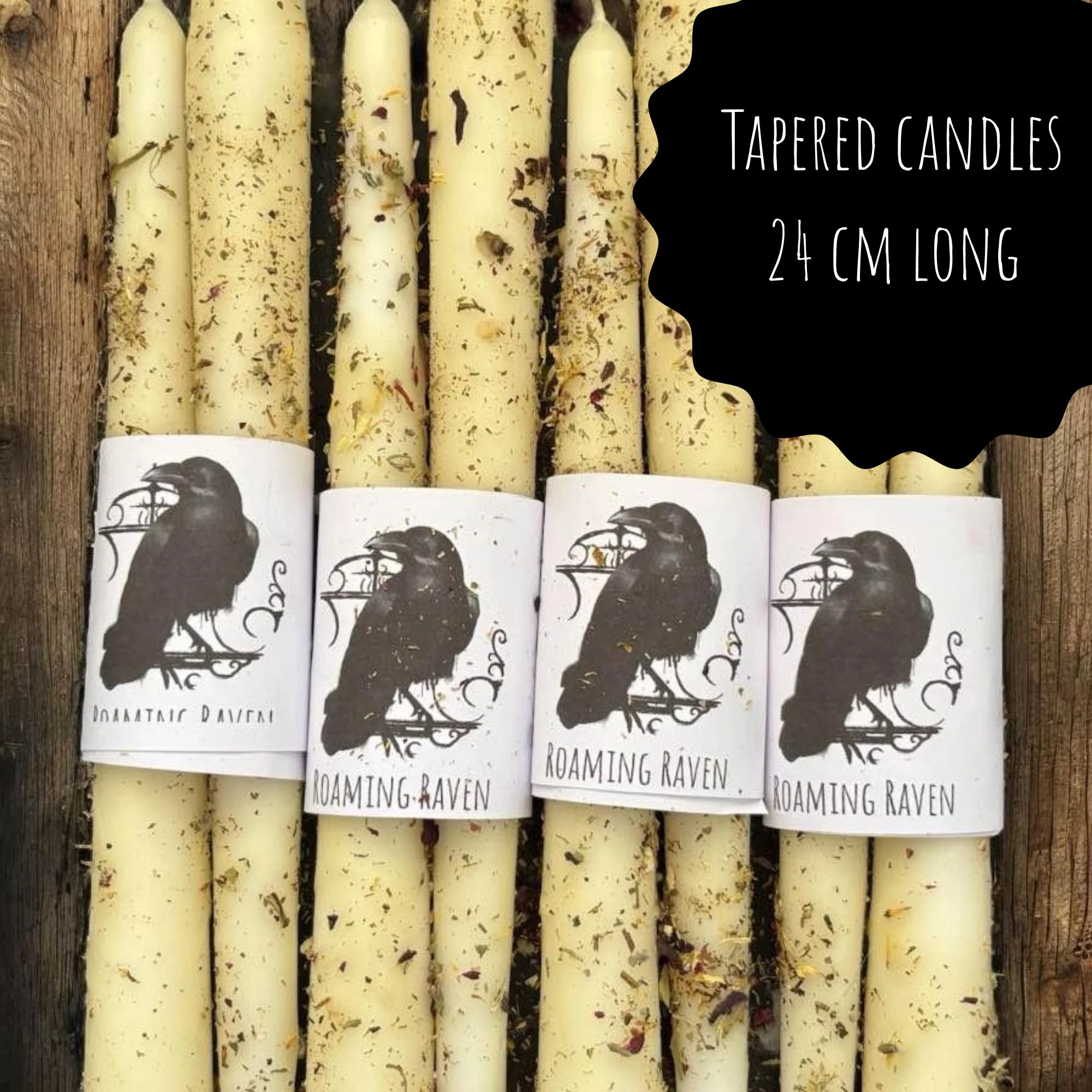 * Witchy tapered candles (24cm long) infused with herbs and flowers
